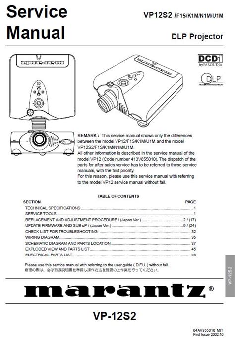 Currently you are looking for an Service Manual Marantz Vp 12s2 Dlp Projector example of which we provide here within some kind of document formats like as PDF, Doc, Power Point, and also images of which will make it easier for you to create an Service Manual Marantz Vp 12s2 Dlp Projector yourself. For a clearer look, you may open some examples below. All of the illustrations about Service Manual Marantz Vp 12s2 Dlp Projector with this website, we get from many sources so you could create a better record of your own.